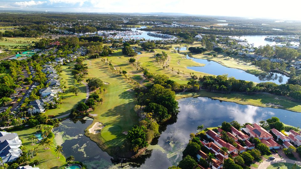 Among its offerings are The Pines, a 14-hole course carved through pine forest; The Palms, with its fast greens and abundant water hazards; and Links Hope Island, featuring a combination of natural and man-made hazards including 128 pot style bunkers.
