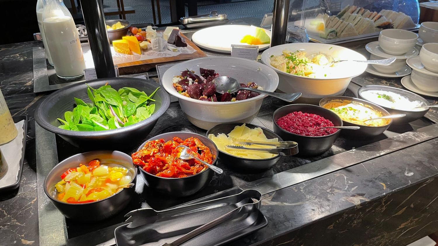 There’s a little less flair in the Singapore Airlines lounge, but the meals are heartier – especially in the mornings – and naturally nod towards Asian as well as Western palettes. This means you can choose between bacon, eggs and tomatoes, and an assortment of dim sum, chicken and sweetcorn soup, curries and more.