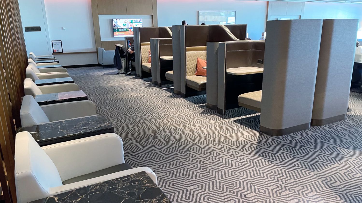 ... while the Singapore Airlines lounge is a smaller, more intimate space with a softer, more relaxing vibe.