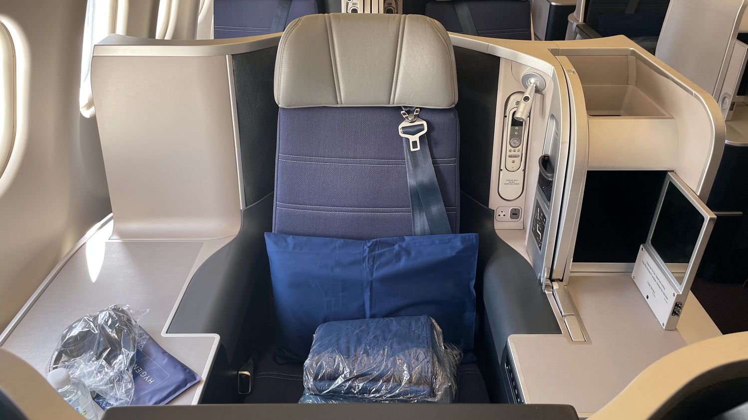 This is another reason some travellers may prefer to avoid the throne seats – when in bed mode, the tall shelves on either side make you feel a bit hemmed in, whereas many other seats have one side side ‘open’ to the aisle.