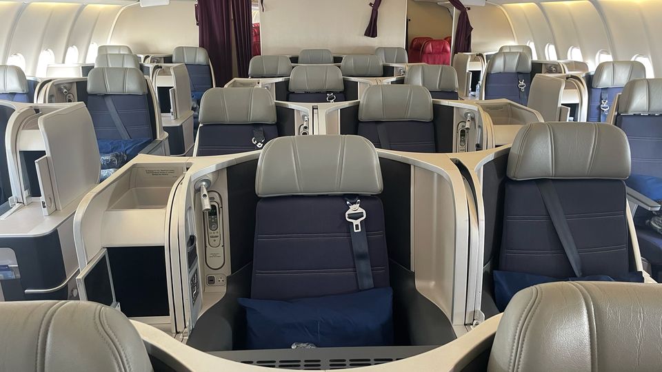 The spacious and comfortable seat converts into a fully-flat bed, and the unique layout offers conventional paired seats for couples travelling together as well as a handful of ‘throne’ seats for solo flyers.