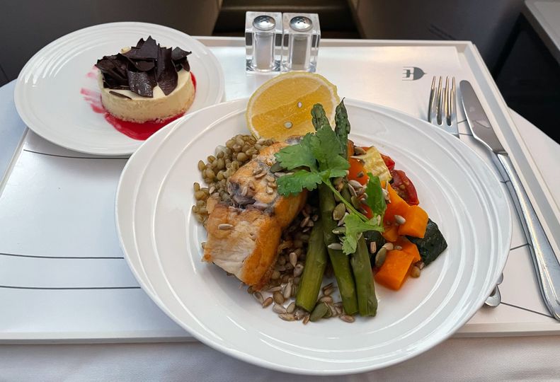 The main course was next to arrive, with business class passengers on my flight offered a choice between