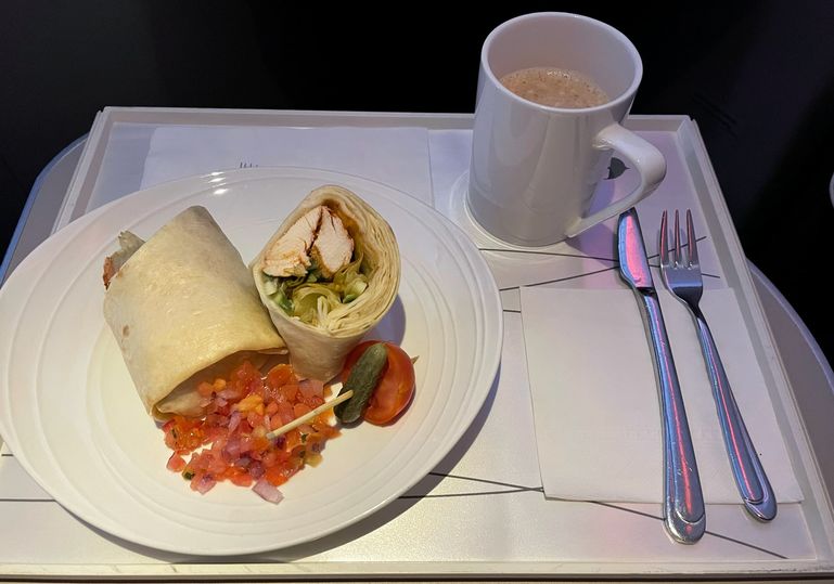 A variety of lighter meals such as this wrap were available towards the end of the flight.