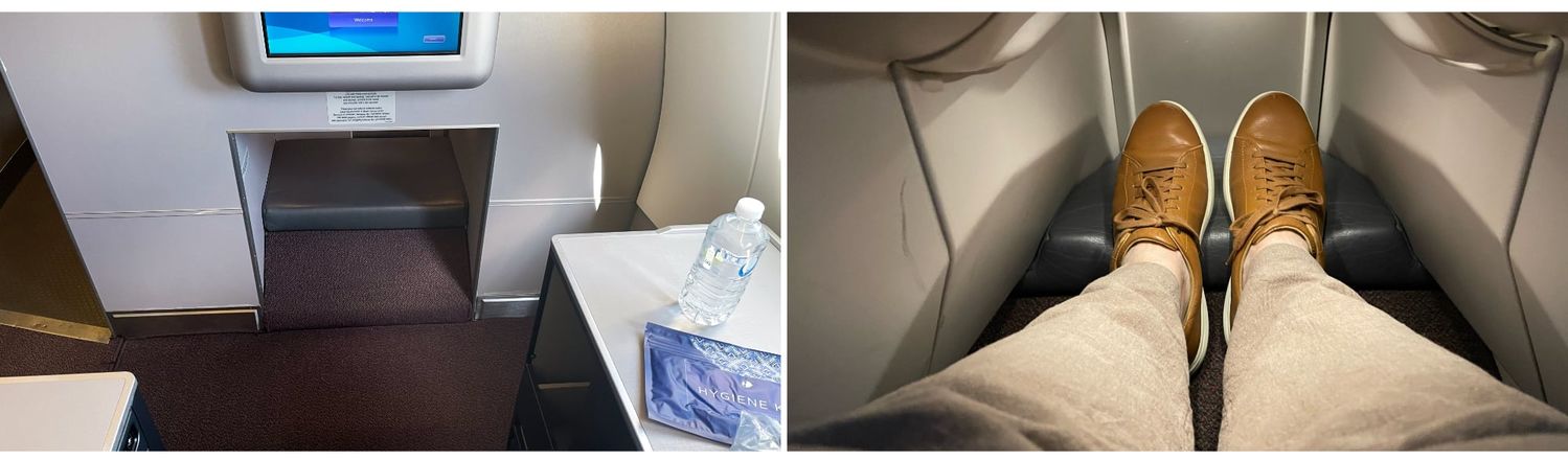 There’s ample legroom in front of each business class seat on Malaysian Airlines’ A330, even though the solo throne seats have a more constrained foot-nook compared to other seats.