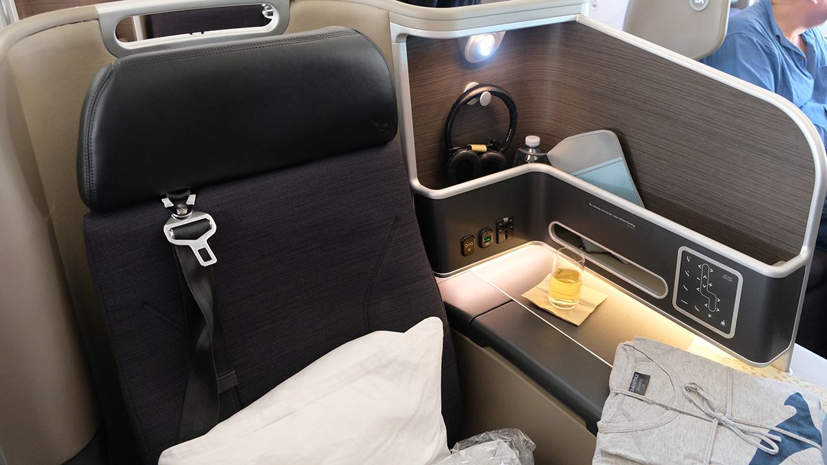 When you’re ready to count some sheep, the seat transforms into a fully-flat two-metre bed. The crew can prepare the bed with a padded mattress for extra comfort and a blanket and pillow, though it’s easy enough to do yourself.