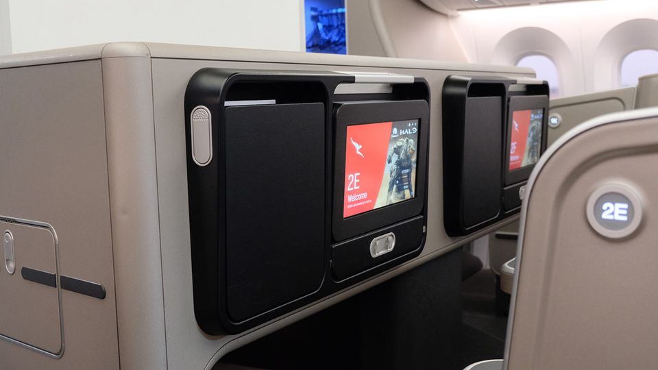 Mweehh thats QF Business - dated already..... have done this domestically a few times and pre COVID to Hong Kong - JUST MAKE SURE you do not use that "holder" aka grab handle above your tiny screen as an IPAD holder, because it will break your IPAD cover case