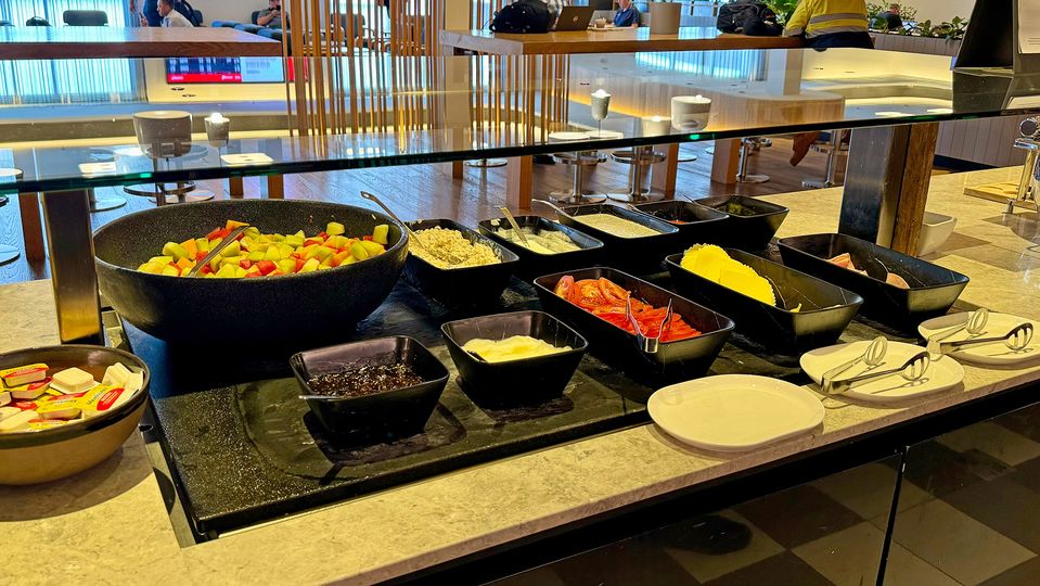 Breakfast is served until 11am, after which the Pizza Bar – a feature unique to this lounge – is fired up and the lunch service begins.