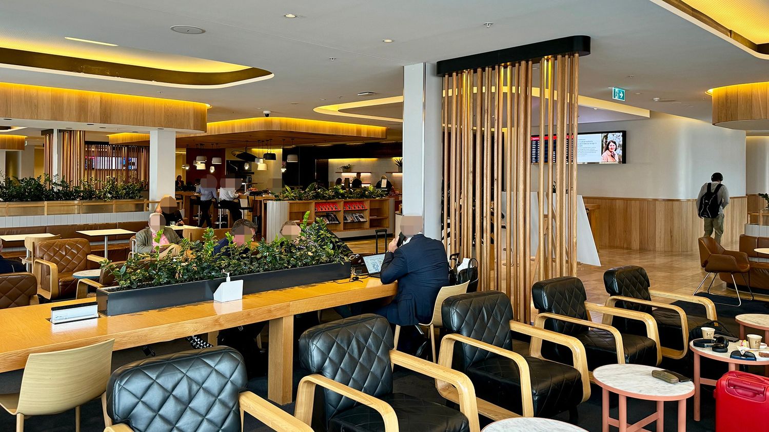 Though physically located a level down from the Qantas Club and indeed lacking the expansive view across the runway, the business lounge is arguably a big step up, both in design and amenity.