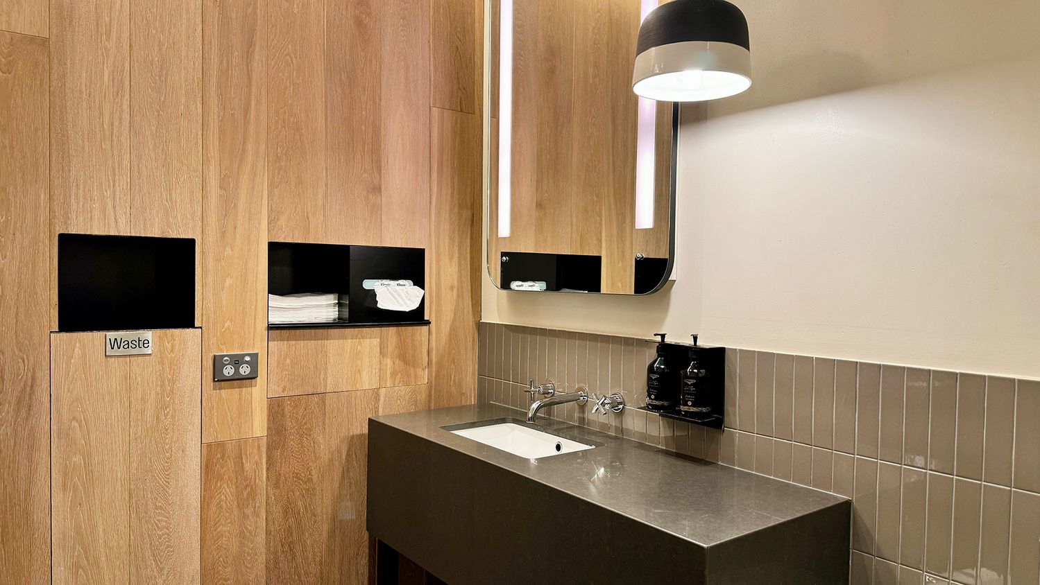 Four shower suites stocked with Li’tya skincare (the same found in Qantas amenity kits) are available free of charge, with towels supplied at their entrance.