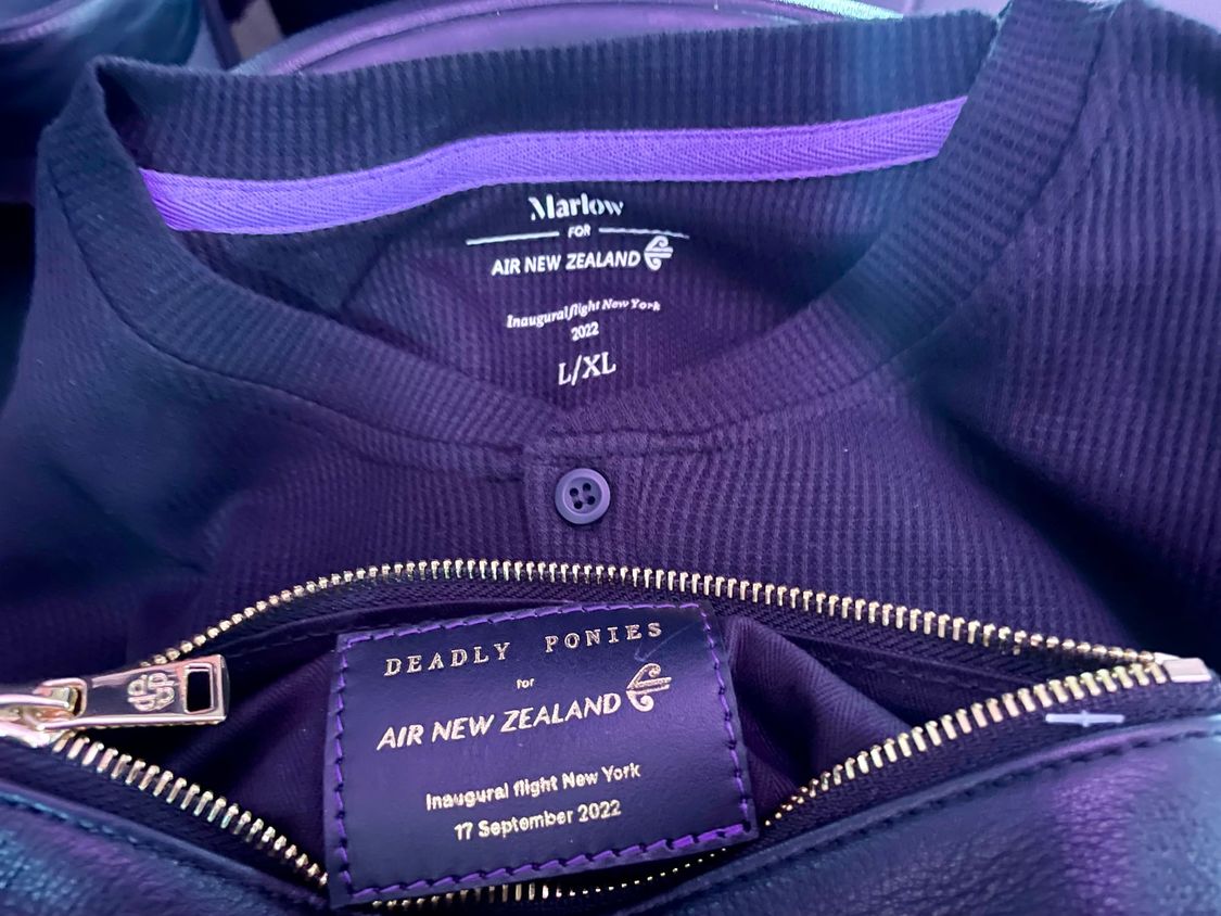 I’ve brought along some comfy Qantas first class PJs, but there’s a surprise on this flight: Air New Zealand is rethinking its ‘no pyjama’ policy, with all business class passengers on the inaugural given a pair of bespoke PJs from New Zealand ‘luxury athleisure’ brand Marlow.