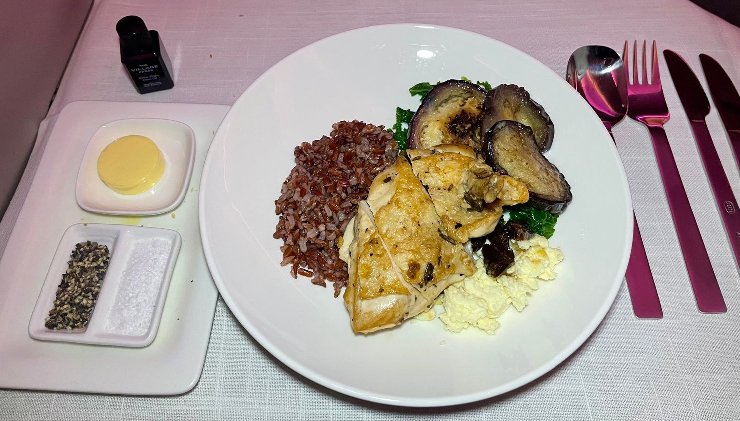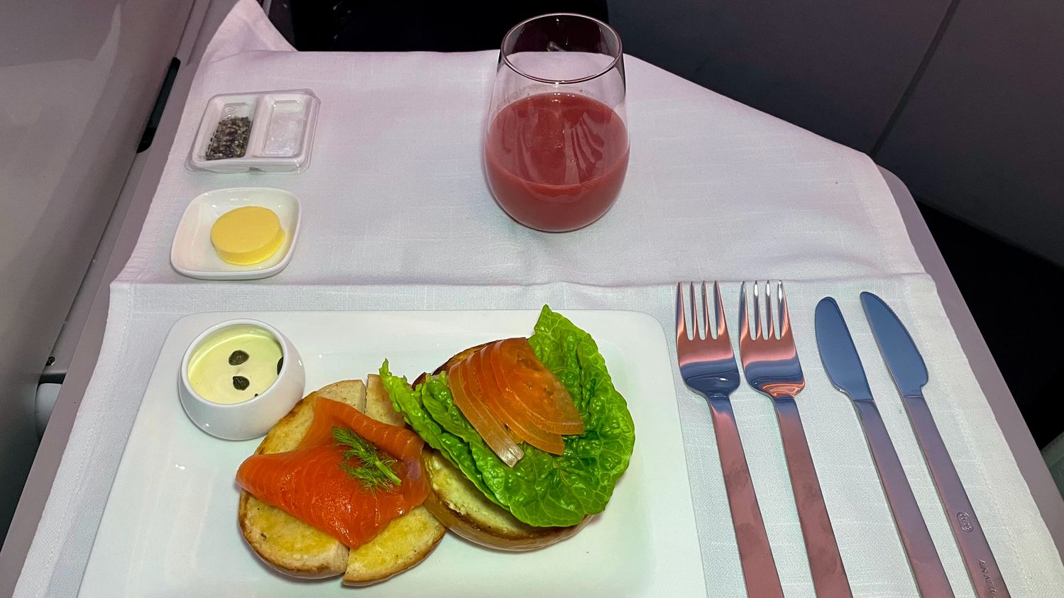 However, its delivery exceeded two hours from first plate down to last plate away, much longer than you’d usually expect: I’m chalking that up to the combined challenges of a menu launch and an inaugural flight with some people in the aisles and a lot of photos being snapped.