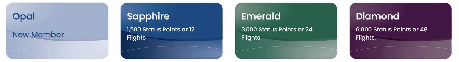 Every new member starts at the base Opal tier, before progressing up to Sapphire, Emerald and Diamond by raking in status points through repeat flying on Rex Airlines.